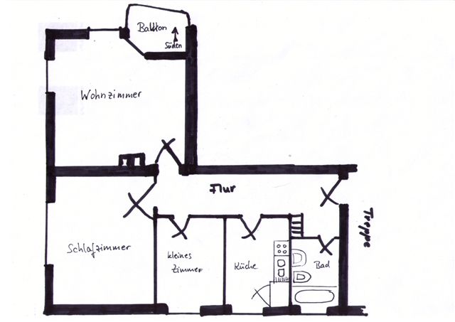 – Fußbodenbelag in den Zimmern  ist Laminat, Flur, Bad und Küche gefliest