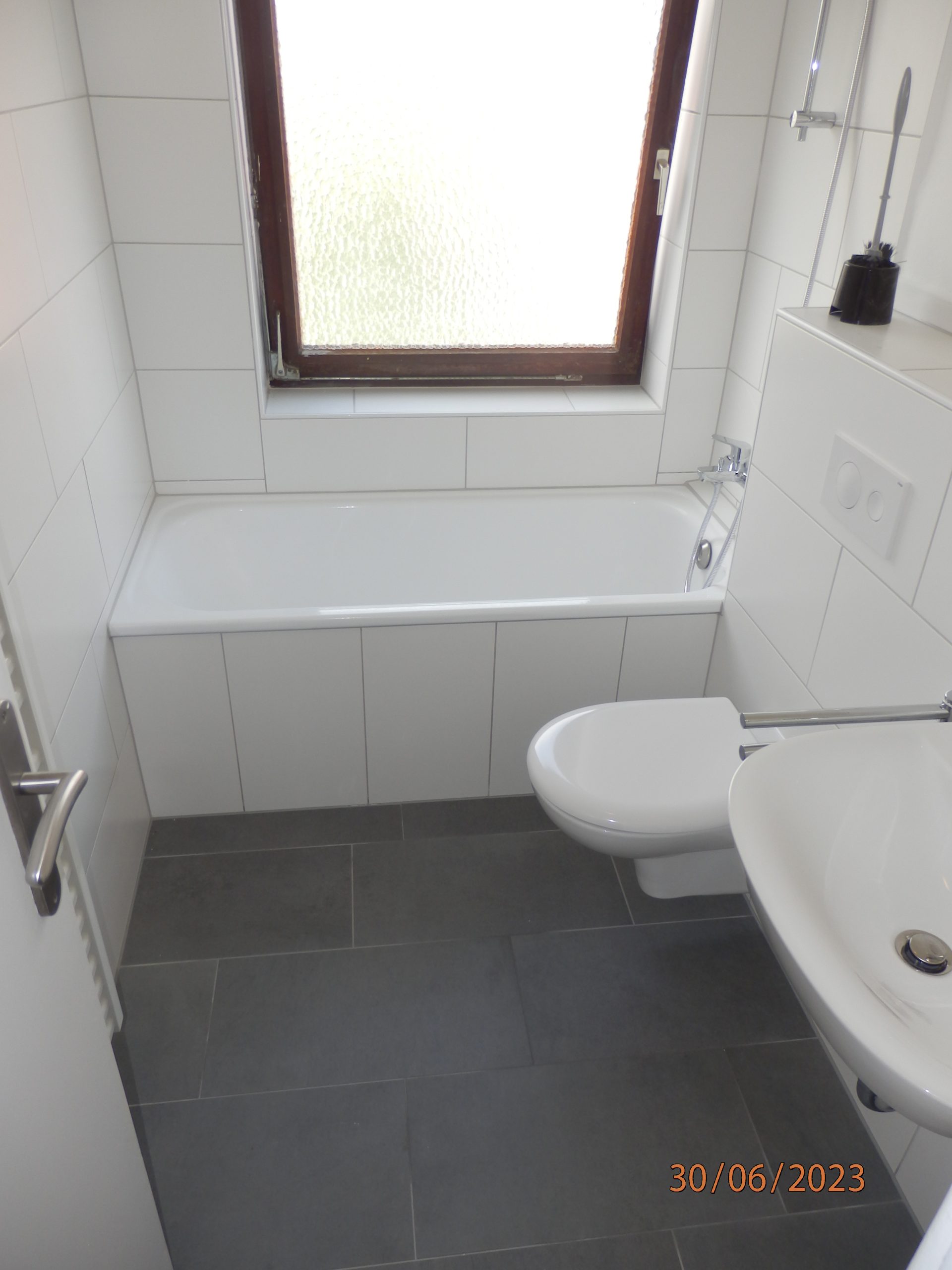 – kleines Vollbad mit Fenster, saniert, neue Wasserleitungen, Handtuchheizkörper, wandhängendes WC, Fliesen (die Fotos vom Bad: so soll es werden)